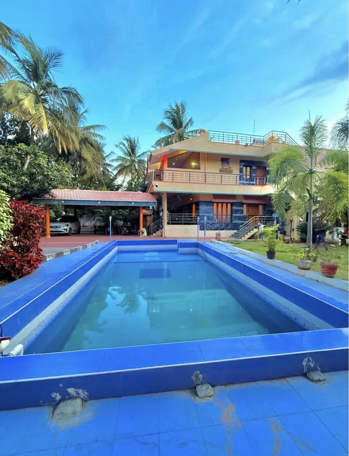 There Is No Refund For Cancellation. 2. Remaining due payment should be done before check in time else the gates will not be opened and booking will be cancelled. 3. HOOKAH GANJA DRUGS are not allowed. 4. CUSTOMERS SHOULD BE RESPONSIBLE FOR THEIR THINGS IN THE HOUSE 5. PENALTY OF 2500/- WILL BE COLLECTED FROM CUSTOMER FOR MISBEHAVIOUR AND DAMAGE AMOUNT IS COLLECTED AS PER THE DAMAGE CAUSED 6. 500/- fine will be collected for broken beer bottles. 7. 1500/- fine for vomits cleaning. 8. Above 21 Age, will be allowed for alcohol consumption (Limited). 9. Please note that only limited alcohol is allowed,specifically quantities below 6 liters. If you're booking an event it's mandatory to obtain the necessary alcohol permit from the Excise Department 10. This price is applicable for a limited number of persons; additional charges will apply for extra people. 11. After booking, you are required to upload the customer's Aadhaar documents, customer's profile picture, guest's Aadhaar documents, and the guest's mobile number.